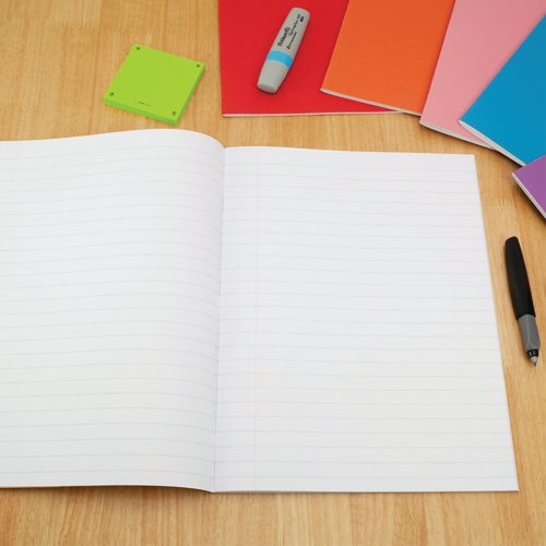 This Hamelin Exercise Book is made up of 75gsm paper, then staple bound with a thick light green manila card cover to ensure your notes are protected. Each page, which features 12mm ruled lines and a margin, is size A4+ and there are 80 pages in each book.