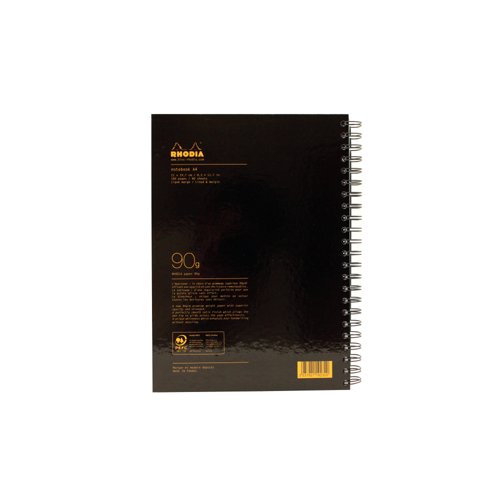 - This Rhodia A4 wirebound business book is a sleek and professional business notebook. Part of the Rhodia Business Collection, this notebook features 160 pages made of brushed vellum paper for optimal writing quality. The 90gsm paper is feint ruled with a margin and designed for minimal bleed-through of ink for optimum use. The notebook is wirebound, allowing it to lie flat for ease of use, with durable hardback covers. This pack contains 3 black A4 notebooks.