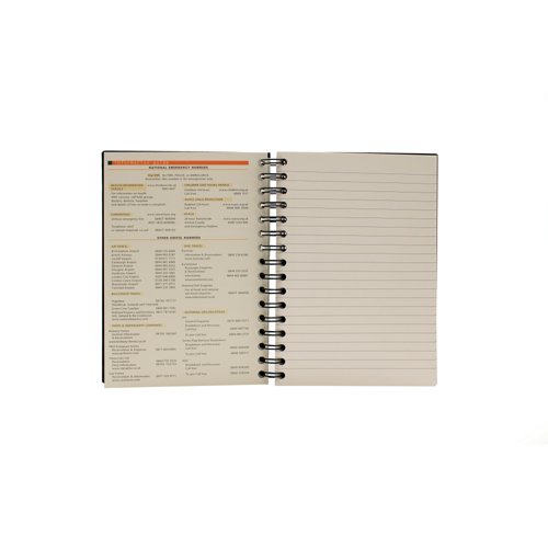Wirebound spine allows pages to lie flat for easy writing