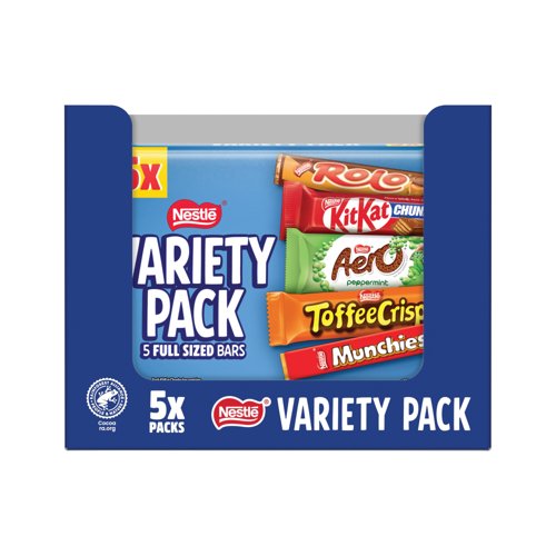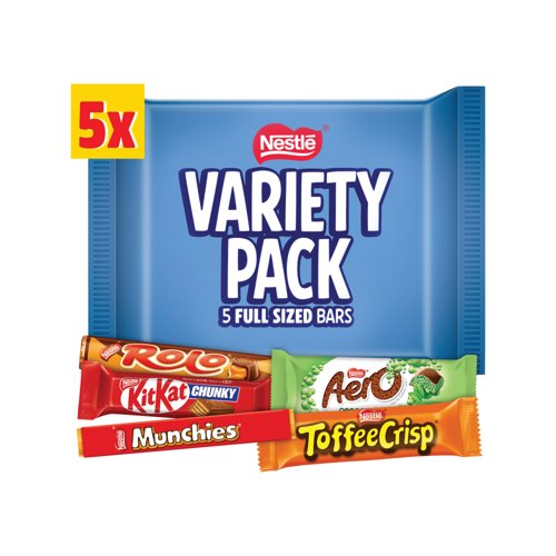 This Nestle Variety Milk Chocolate Bar Multipack contains 5 iconic chocolate treats - Munchies, Rolo, Toffee Crisp, KitKat and Aero. Perfect for sharing with family or friends, these chocolate bars contain no artificial colours, flavours or preservatives.