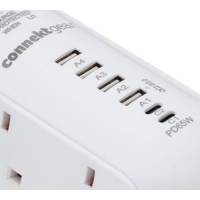 - Provides power to 6 UK plug devices and 4 USB type a and 2 USB type C devices.