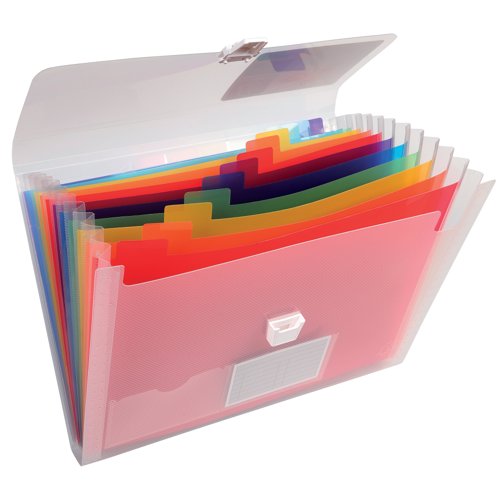 The Exacompta Expanding case is made from 0.7mm clear polypropylene. 33x25cm in size and has brightly coloured pp dividers. The file has an expanding spine and a press stud closure.