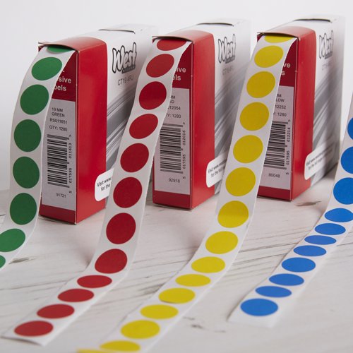 Blick dispensers are a convenient storage and dispensing solution for large volumes of self-adhesive labels. Blick labels are available in a wide range of colours and sizes to suit any situation. The box features a handy tear-off dispenser to simplify even the biggest labelling task. The continuous roll makes for easy label application. All labels are made from a sustainable source of paper and are fully compliant with all timber regulations. Supplied in a pack of 1280 green labels.