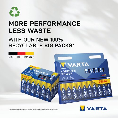 - Varta Longlife Power is a powerful battery for power hungry devices. Suitable for battery operated toys, wireless mice and flashlights, etc., it offers powerful energy with a guaranteed storage time of 10 years. This battery pack contains forty batteries and provides clear communication of usage with pictograms on the pack.