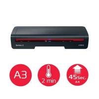 - The GBC 240HS is a sleek and efficient solution for everyday laminating needs. Designed with both style and performance in mind, this high-speed A3 laminator is ideal for home or home office use. Boost productivity and reduce lamination time by 33% using GBC high-speed pouches. With a fast 2-minute warm-up time, it laminates a 75-micron A4 sheet in just 45 seconds, making it perfect for efficiently handling your home projects. The easy-to-use control switch offers three pouch thickness settings from 75-125 microns, providing flexibility for various document types. An anti-jam release lever ensures smooth operation by effortlessly resolving any misfed pouches. Additionally, the smart status LED system simplifies operation with clear visual and audible cues: red during warm-up, blue with a sound when ready, and an automatic shut-off after 15 minutes of inactivity to conserve energy. Protect and preserve your important documents with a perfect finish, every time. Black and red colour.
