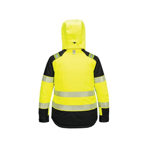 - The PW3 Womens Hi-Vis Winter Jacket is designed with wearer comfort and protection in mind. Made from Portwest Extreme stretch soft-touch fabric, it is waterproof and windproof, keeping the wearer dry in all conditions. The added Insulatex Pro thermal insulation maintains body temperature without adding extra weight. Certified to EN343 Class 4:1, this jacket features a 2-way centre front zip, long double-puller side entry pockets for easy access even when wearing a harness, a removable helmet-compatible hood with a shaped peak and 3-point adjustment system, adjustable cuffs, and an extended back length for added dirt protection.