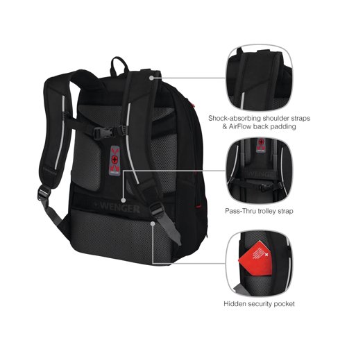 | Airflow back padding and shock absorbing shoulder straps |