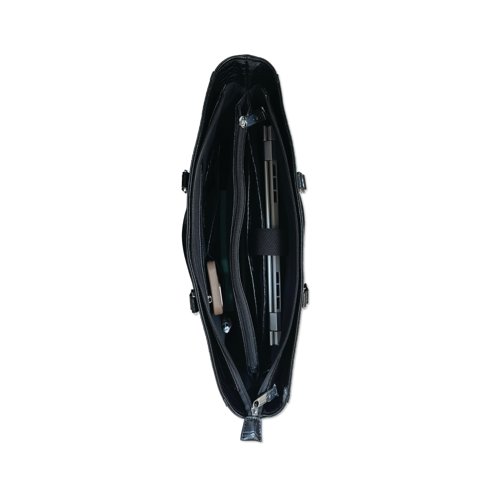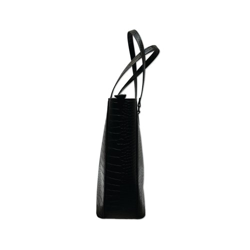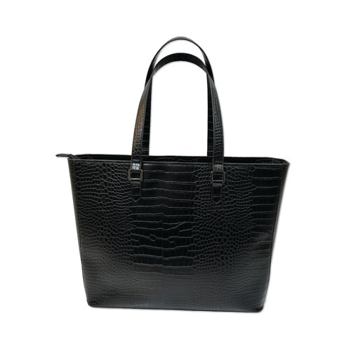 - Elegant and practical, this fashionable business tote is crafted from black croc-embossed PU with sleek chrome hardware. Featuring two shoulder strap handles, it offers a spacious interior with a zippered divider, a secure pocket for essentials and a dedicated laptop and notebook compartment for functionality.