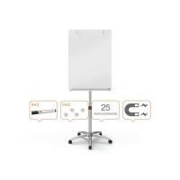 Glass mobile easel with a contemporary stylish design with height adjustable mobile base The magnetic whiteboard glass surface delivers ultra erasability with the highest resistance to ink stains, pen marks, scratches and dents.