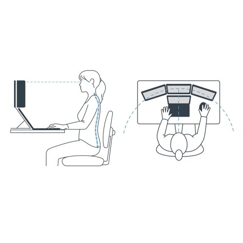 | Adjustable screens with 3 height levels to raise to eye level to ensure proper ergonomic posture |