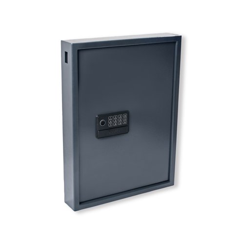 - This Pavo High Security Advanced Steel Key Cabinet is auto-opening with a fingerprint and electronic lock. The cabinet comes with two emergency keys and wall fixings are included. With a 50 key capacity within this dark grey cabinet, its dimensions (W x D x H) are 380 x 100 x 550mm.