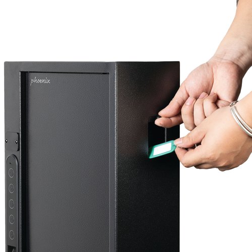 - The Phoenix Fingerprint Key Safe is Ideal for home, office, schools, garages and office blocks with an advanced user friendly electronic lock and biometric fingerprint scanner. The scanner can store up to 20 fingerprints with an anti-tamper or bounce solenoid system. The safe is fitted with a key override facility for emergency use, with two keys supplied. The safe is ready prepared for fixing to the wall with four anchor bolts supplied and it has features such as adjustable key hooks, spring loaded door and a key deposit slot.