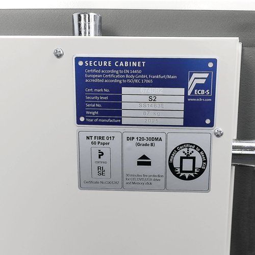The Phoenix Fortress Pro is designed and tested to the latest and prestigious European test standards for both Fire and Security Protection, making it ideal for home or office and keeping GDPR compliant. The safe has been tested to the International NT Fire 017-60 fire test standard, providing 60 minutes of fire protection. Fitted with a high security VdS certified electronic lock with one master code and one user code that allows for easy programming.